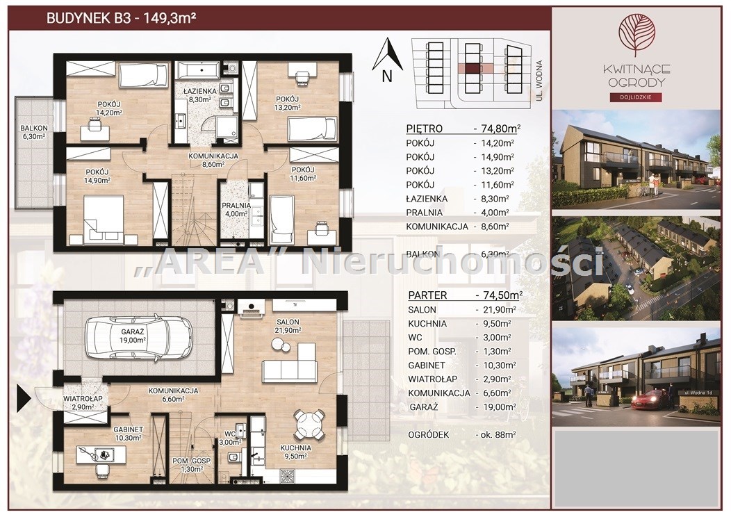 Oferujemy do sprzedaży segment B3 w inwestycji "Kwitnące Ogrody Dojlidzkie" składającej się z 16 budynków mieszkalnych jednorodzinnych, niepodpiwniczonych w zabudowie szeregowej położonych w Białymstoku przy ul. Wodnej na osiedlu Dojlidy Górne.
