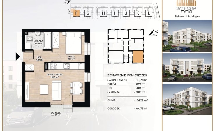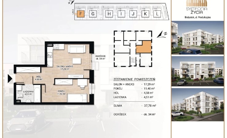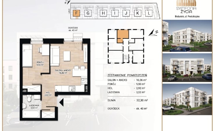 Oferujemy mieszkanie 2- pokojowe nr F10 o powierzchni 32,30m2 zlokalizowane na I piętrze w kameralnym budynku realizowanym w ramach II etapu inwestycji deweloperskiej "Symfonia Życia " przy ulicy Produkcyjnej w Białymstoku.