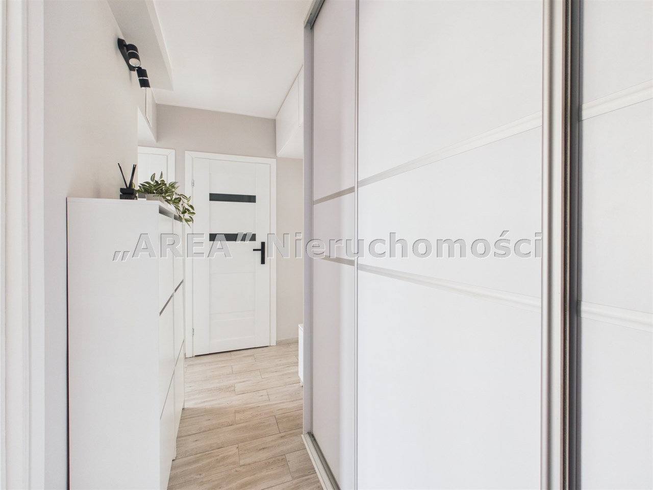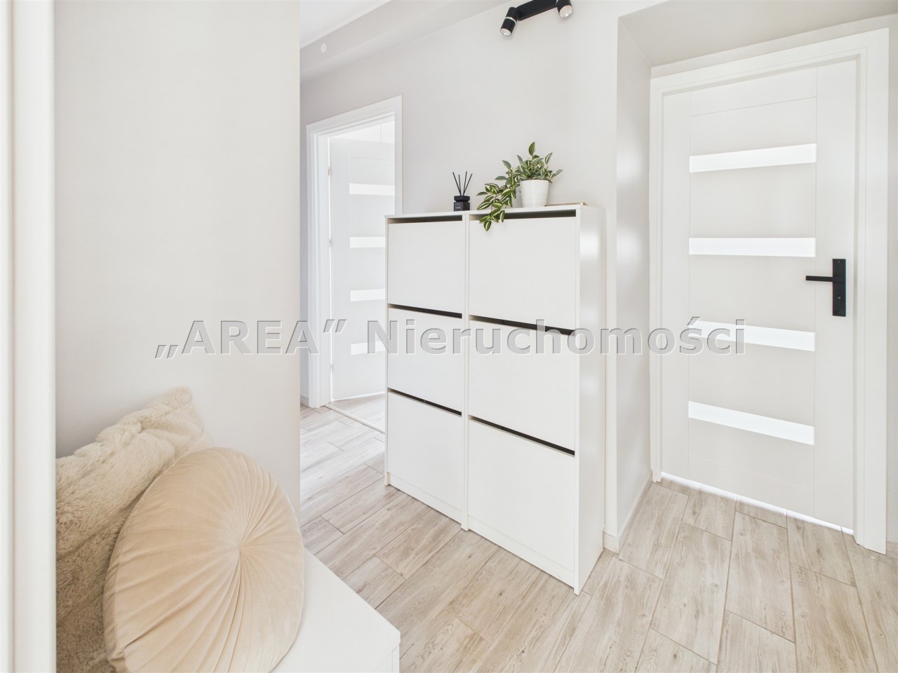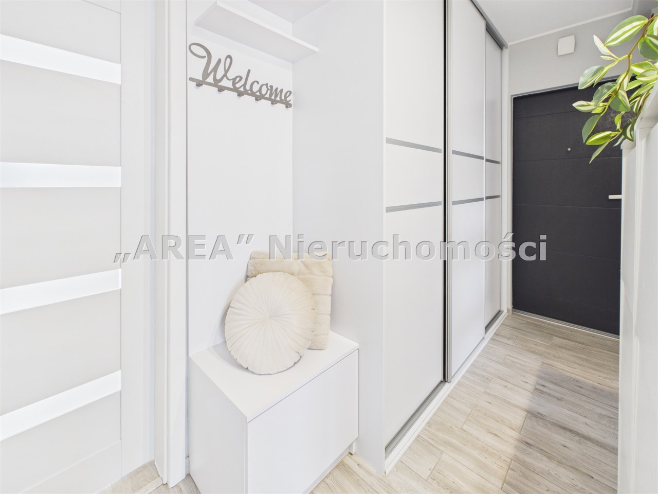 Dodatkowym udogodnieniem jest przestronny korytarz z pojemnymi szafami w zabudowie, który ułatwia utrzymanie porządku.