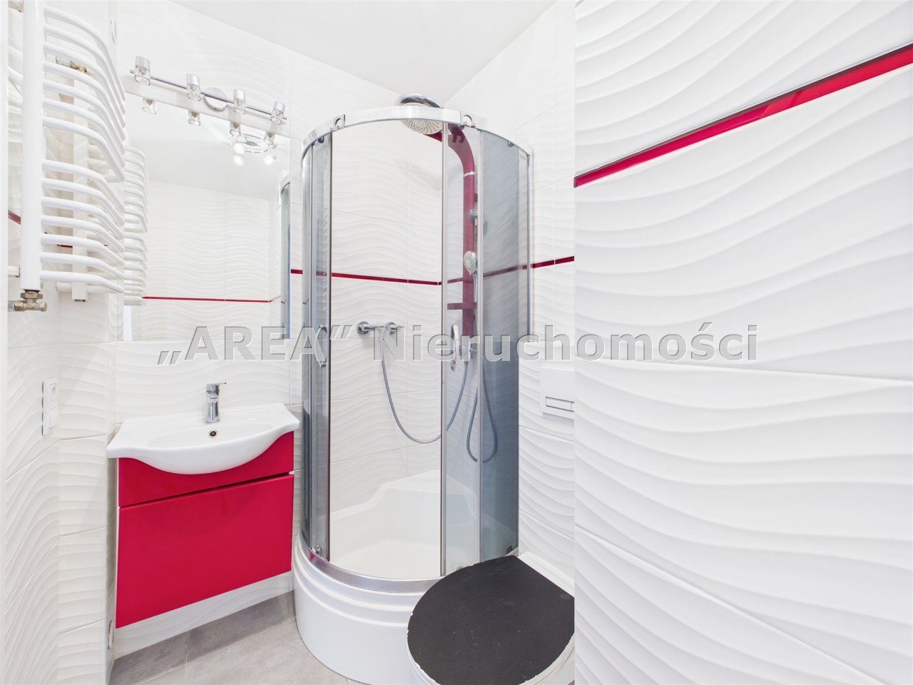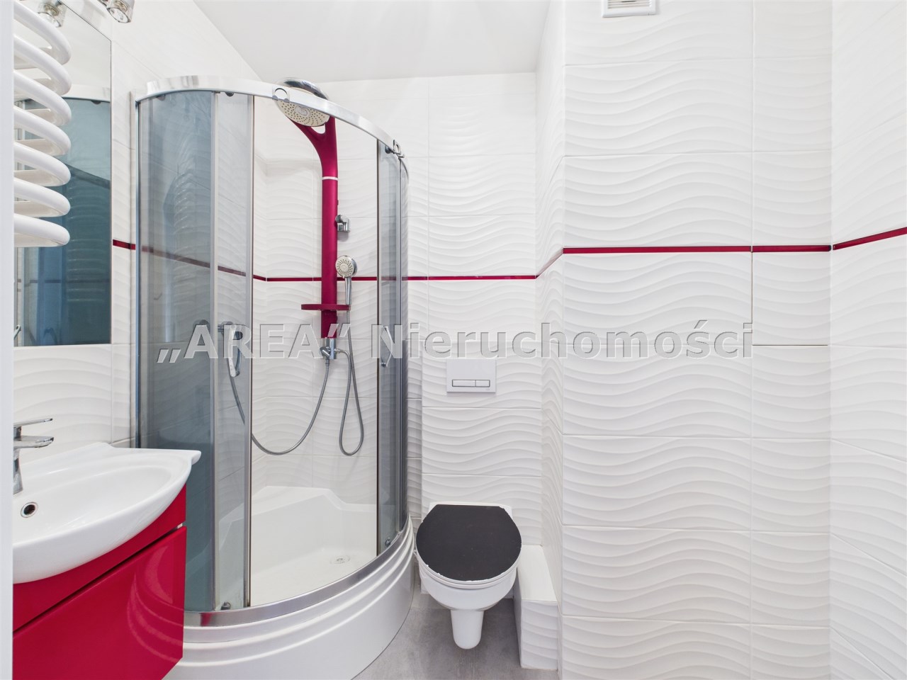 Łazienka (3 m²) – z kabiną prysznicową, umywalką, WC oraz miejscem na pralkę.