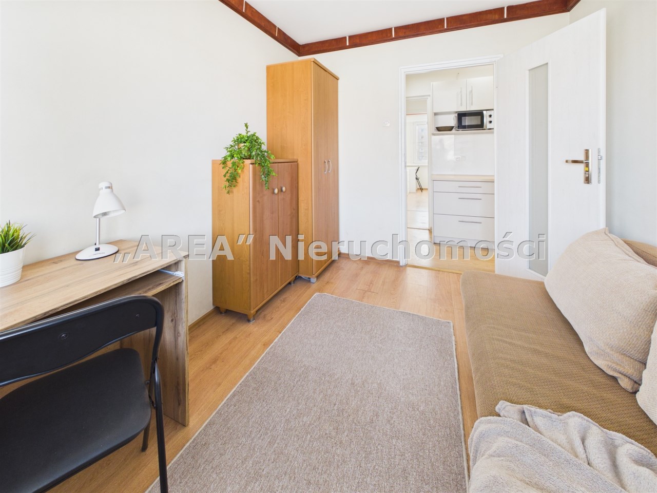 Układ uzupełnia oddzielna, urządzona kuchnia z zabudową, łazienka w ponadczasowej bieli oraz osobne WC – rozwiązanie szczególnie wygodne przy większej liczbie mieszkańców. W mieszkaniu wymieniono okna oraz położono panele podłogowe. Ściany wymagają odświeżenia, co daje możliwość nadania wnętrzu własnego stylu bez konieczności przeprowadzania kosztownego remontu generalnego.