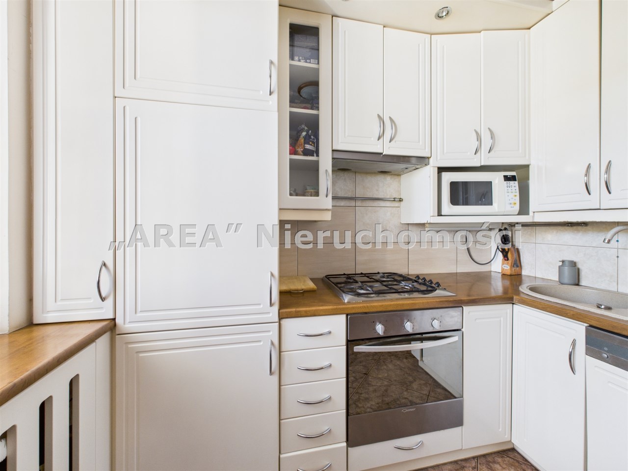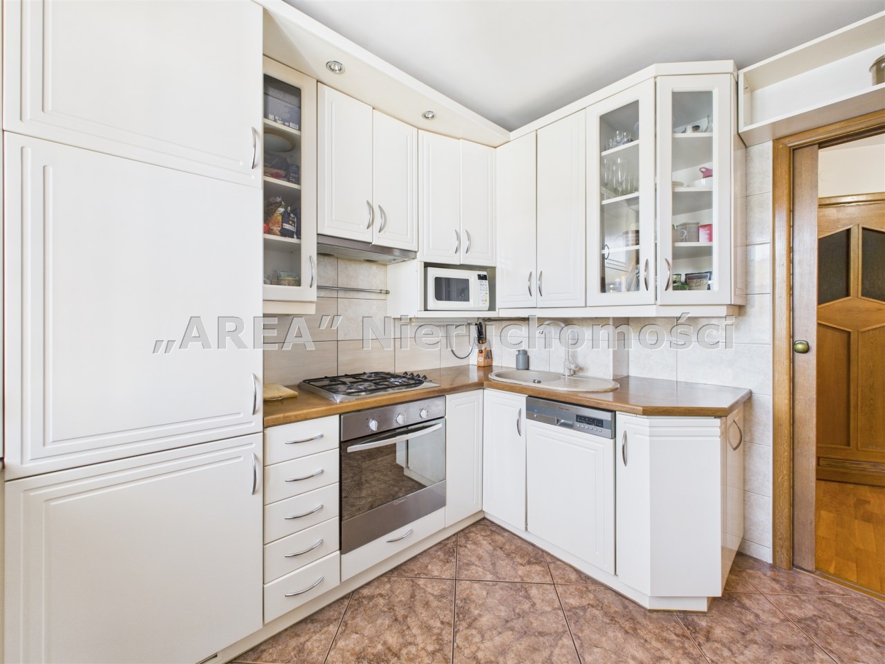 ✔ Oddzielna kuchnia w jasnej zabudowie, w pełni wyposażona w sprzęt AGD: płyta gazowa, piekarnik, zmywarka oraz lodówko-zamrażarka w zabudowie