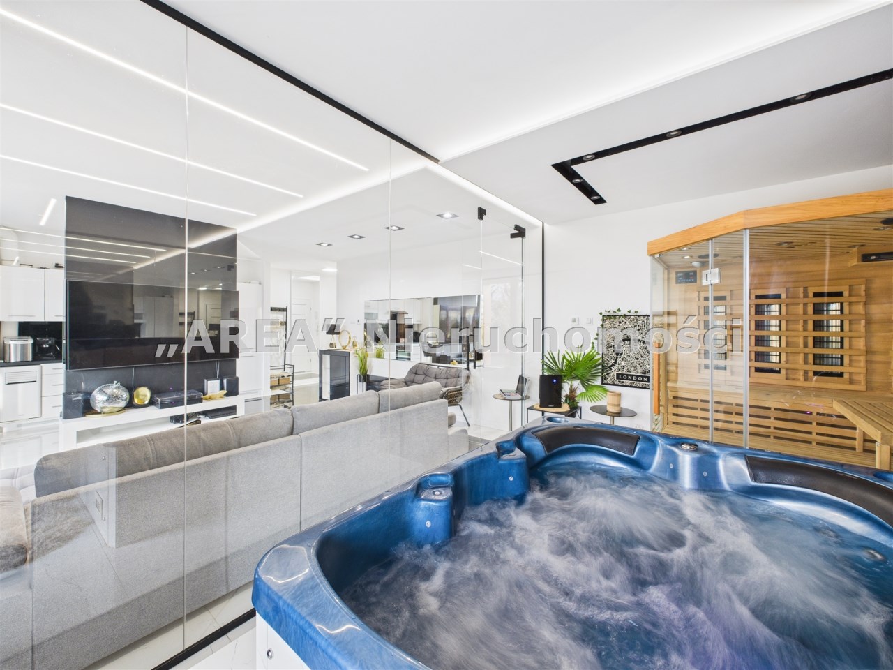 Prywatna strefa SPA: pełnowymiarowy system Jacuzzi oraz sauna – idealne na relaks po dniu pełnym wrażeń. nastrojowe oświetlenie budujące intymną atmosferę, luksus, który masz na wyłączność.